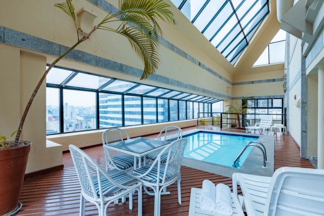 A estrutura completa do hotel inclui piscina climatizada, fitness center, sauna, salas de eventos e restaurante com o melhor da gastronomia regional, oferecendo comodidade e conforto para todas as estadas.