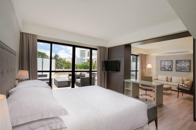 Com localização nobre no bairro de Campo Grande, em frente à Praça 2 de Julho, você estará próximo ao centro histórico de Salvador e de pontos turísticos como: Mercado Municipal, Pelourinho, Elevador Lacerda e Teatro Castro Alves. Hospedar-se no Wish Hotel da Bahia é também vivenciar um pouco da história, já que o prédio é tombado como Bem Cultural do Estado da Bahia e pelo Instituto do Patrimônio Artístico e Cultural da Bahia (IPAC), além de a obra arquitetônica ser assinada pelos renomados Diógenes Rebouças e Paulo Antunes Ribeiro. A decoração é um capítulo à parte e encanta a todos com obras de arte de Genaro de Carvalho, Carybé, Julio Espinosa e gravuras dos artistas Calazans Neto, Di Cavalcanti, Pierre Verger e Caetano Dias. Pensando sempre no seu bem-estar, oferecemos serviços de excelência como momentos relax no Natin SPA, academia completa e bem equipada, piscina para adultos e crianças e os apartamentos mais espaçosos e bem decorados de Salvador. A experiência gastronômica não fica de fora, com os restaurantes Passeio da Vitória, Genaro de Carvalho e o lobby bar Adega Gourmet, que trazem todos os sabores contemporâneos aliados ao típico tempero baiano. E a diversão continua noite adentro com programação musical especial. Daqui a pouco, hoje, amanhã: venha e sinta-se bem!